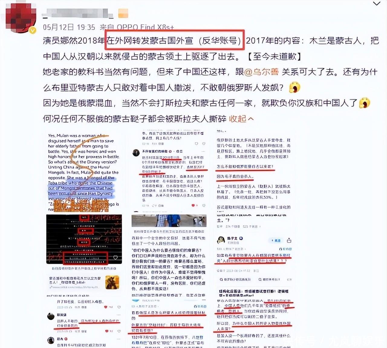 但她的立场却有极大的问题,比如支持外网的反华账号,说花木兰是蒙古国人,简直离谱到家了。