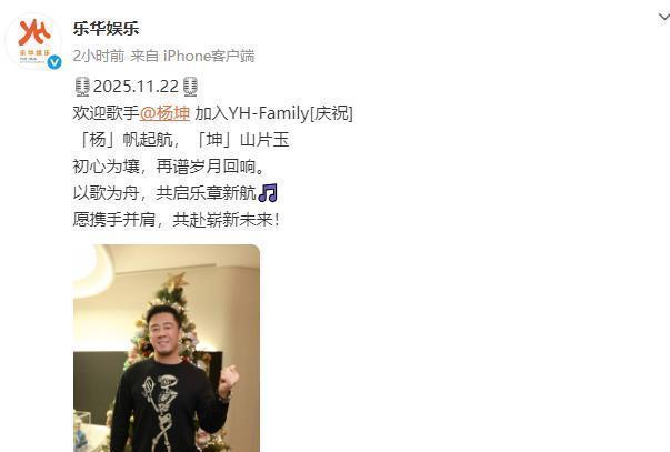 搜索发现,乐华娱乐官方账号发文欢迎杨坤加入,称其为“实力唱将”,并配以“初心为壤,再谱岁月回响”等寄语。据了解,此次合作被视为成熟歌手与头部经纪公司的强强联合。